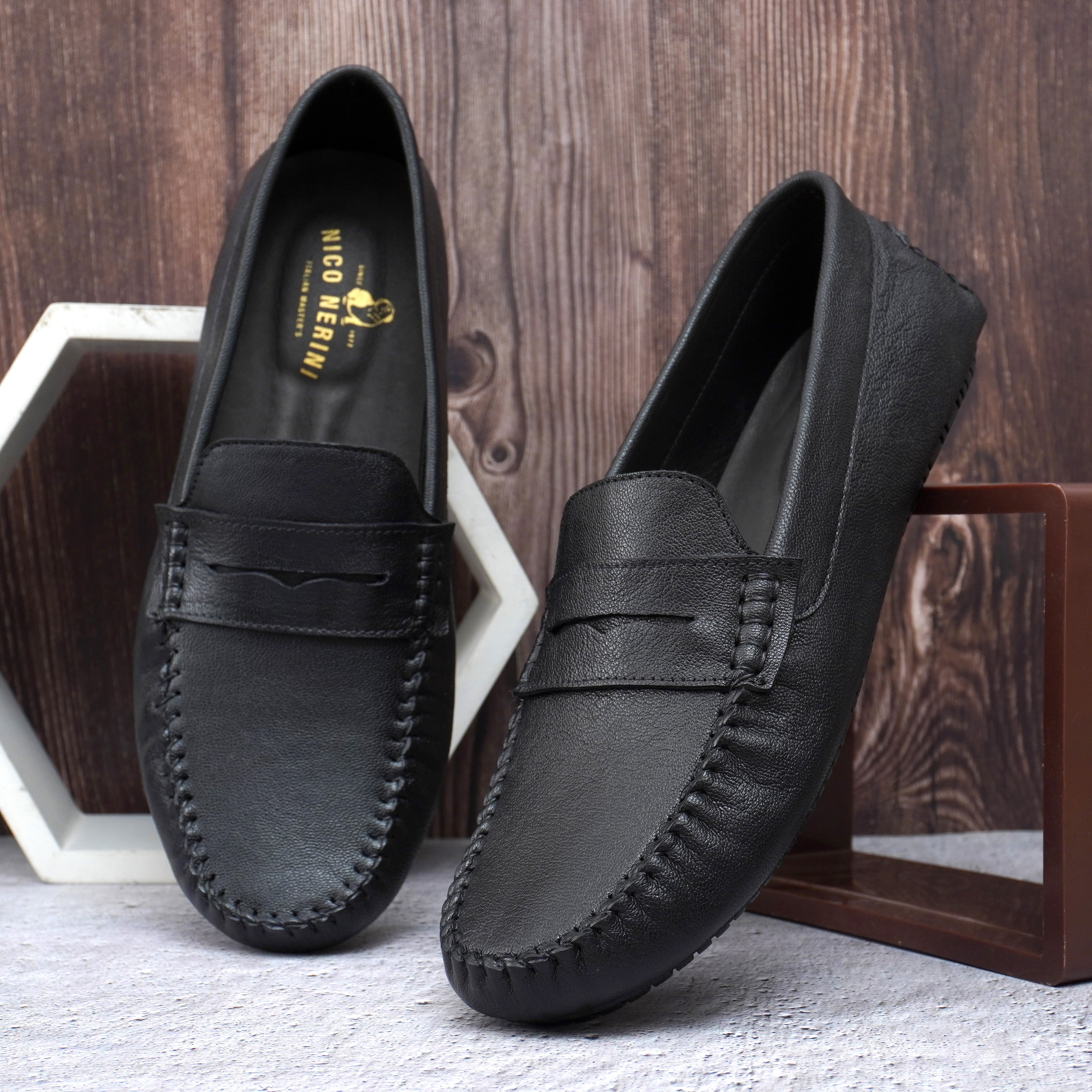 Nico Nerini Men's Premium Genuine Leather Casual Slip on Loafers Breathable Driving Shoes